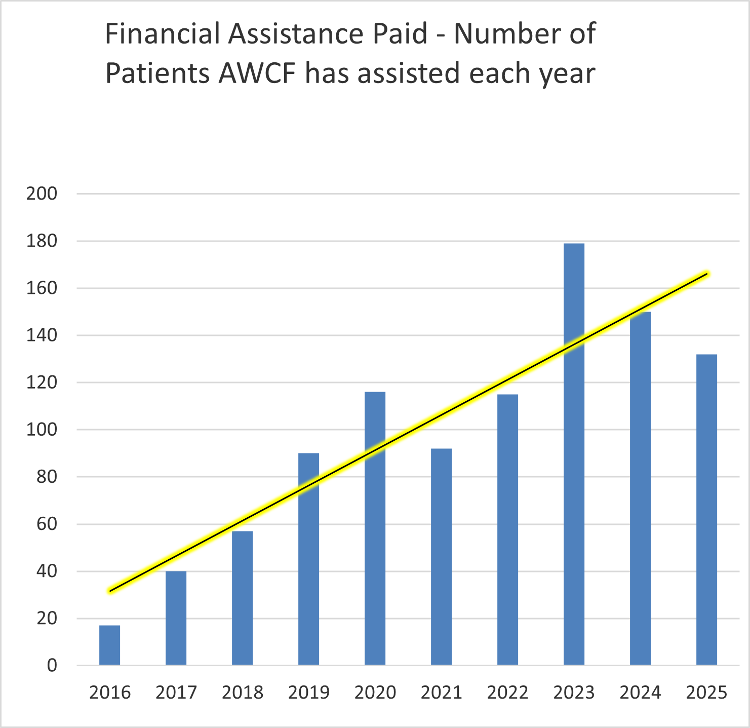 The AWCF provides financial assistance to patients who find themselves in financial difficulty due to their cancer. The normal assistance is up to $700 but in exceptional circumstances the AWCF provides in excess of the $700.